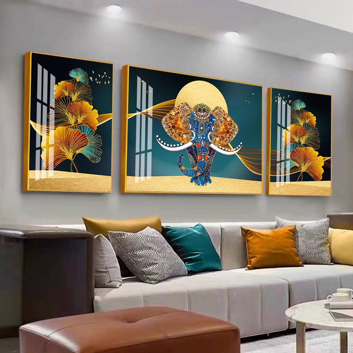 大象麋鹿简美三联客厅沙发装饰画简约招财水晶壁画挂画轻奢风北欧热门设计联盟服务商