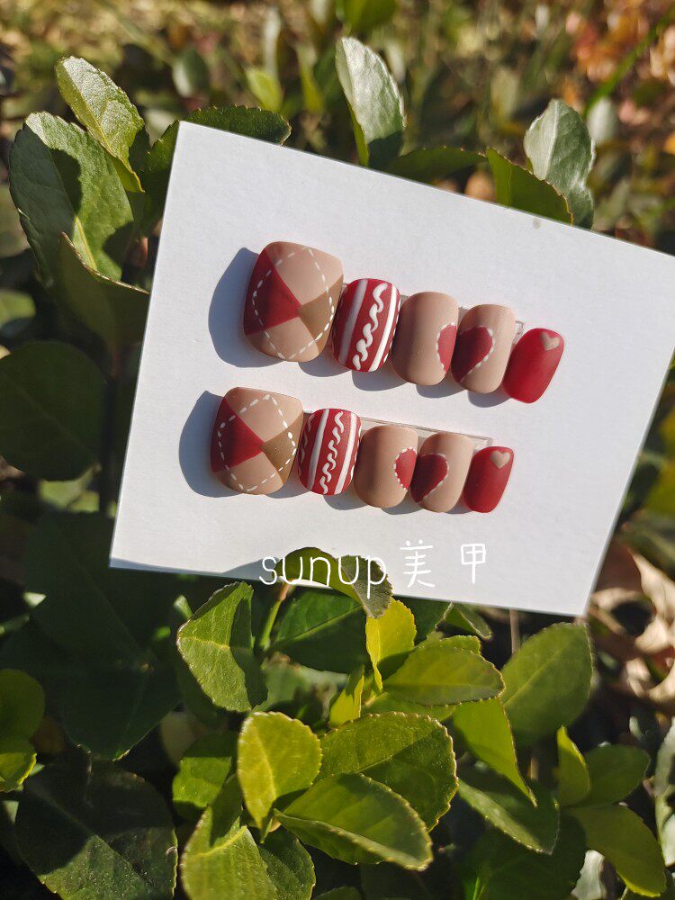 假指甲贴片穿戴甲 甜心秋冬复古菱形毛衣光疗甲片可拆卸热门设计联盟服务商